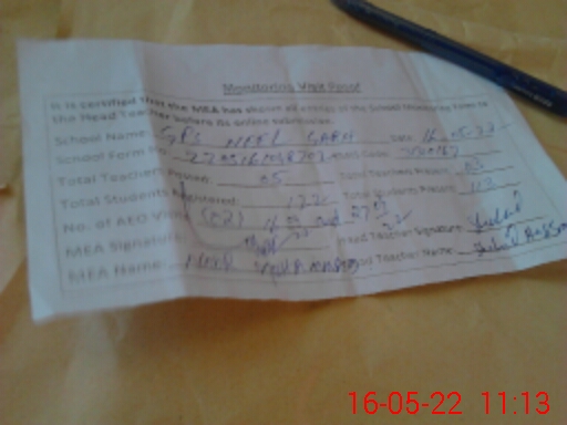 | Attendance Register | Head Teacher | MEA with School | Visit Proof |