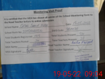 | Certified that this School was Inspected by the Undersigned MEA/DMO Today and the Information Stated Above is as Per Record. | |||||