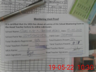 | Certified that this School was Inspected by the Undersigned MEA/DMO Today and the Information Stated Above is as Per Record. | |||||