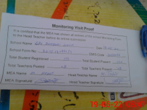 | Certified that this School was Inspected by the Undersigned MEA/DMO Today and the Information Stated Above is as Per Record. | |||||