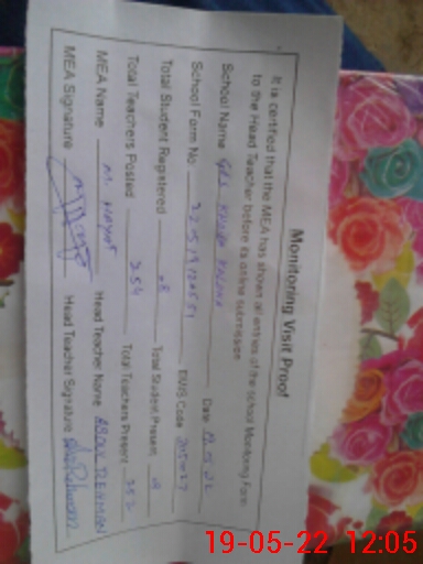 | Attendance Register | Head Teacher | MEA with School | Visit Proof |