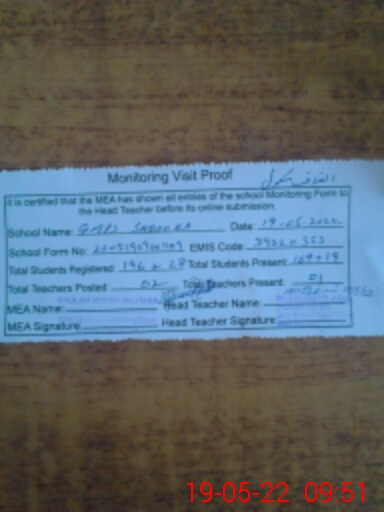 | EMIS Code: 39220353 | Name of School: GMPS SABOOKA DAKHANA TIBI LAL BAIG | |||