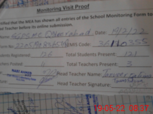 | Attendance Register | Head Teacher | MEA with School | Visit Proof |