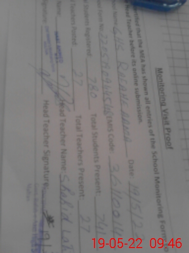 | Certified that this School was Inspected by the Undersigned MEA/DMO Today and the Information Stated Above is as Per Record. | |||||