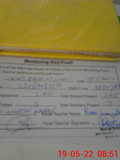 | Certified that this School was Inspected by the Undersigned MEA/DMO Today and the Information Stated Above is as Per Record. | |||||