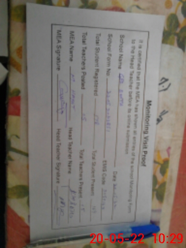 | Certified that this School was Inspected by the Undersigned MEA/DMO Today and the Information Stated Above is as Per Record. | |||||