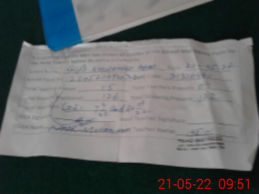 | Attendance Register | Head Teacher | MEA with School | Visit Proof |
