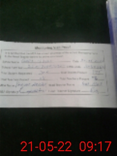 | Monitoring Date: 21-05-2022 | Start Time: 21-05-2022 08:50 AM | End Time: 21-05-2022 09:18 AM | Name of MEA: Pe**** Ak**** BN**** 12 | |