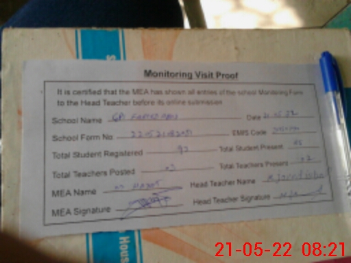 | Attendance Register | Head Teacher | MEA with School | Visit Proof |