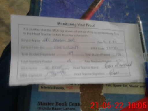 | Attendance Register | Head Teacher | MEA with School | Visit Proof |