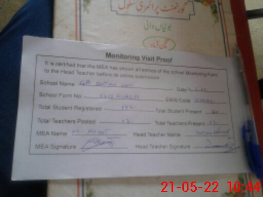 | EMIS Code: 31150162 | Name of School: GPS BUTIAN WALI | |||