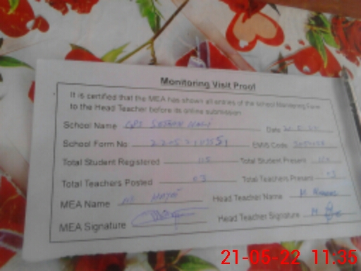 | Certified that this School was Inspected by the Undersigned MEA/DMO Today and the Information Stated Above is as Per Record. | |||||