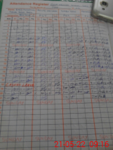 | CNIC | Full Name | Designation | R/C | Absence During Last Calender Month |