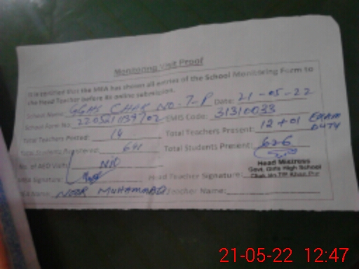 | EMIS Code: 31310033 | Name of School: GGHS CHAK NO. 7/P | |||