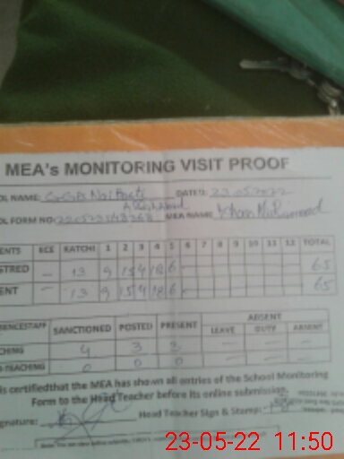 | Attendance Register | Head Teacher | MEA with School | Visit Proof |