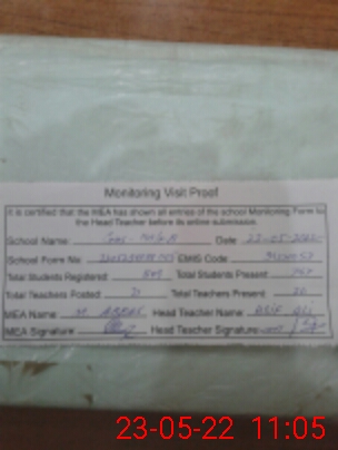 | Attendance Register | Head Teacher | MEA with School | Visit Proof |