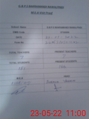 | Certified that this School was Inspected by the Undersigned MEA/DMO Today and the Information Stated Above is as Per Record. | |||||