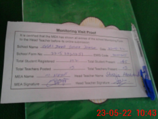 | Certified that this School was Inspected by the Undersigned MEA/DMO Today and the Information Stated Above is as Per Record. | |||||