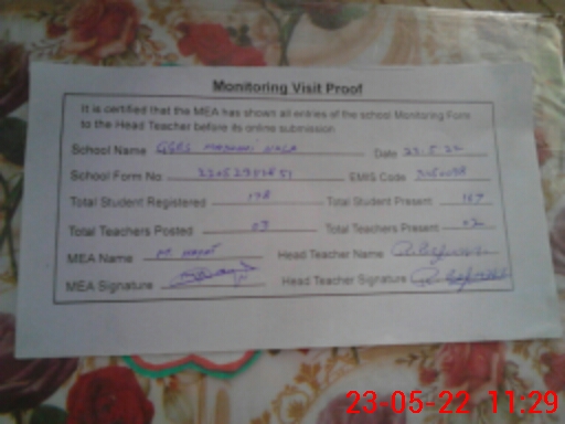 | Certified that this School was Inspected by the Undersigned MEA/DMO Today and the Information Stated Above is as Per Record. | |||||