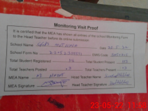 | Attendance Register | Head Teacher | MEA with School | Visit Proof |