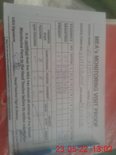 | Attendance Register | Head Teacher | MEA with School | Visit Proof |