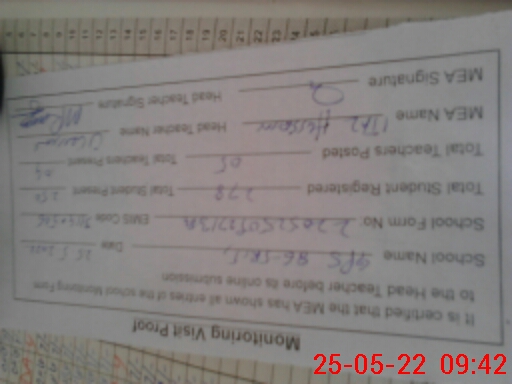 | Certified that this School was Inspected by the Undersigned MEA/DMO Today and the Information Stated Above is as Per Record. | |||||