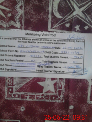 | EMIS Code: 39220149 | Name of School: GPS LUQMAN MEHRO KA | |||