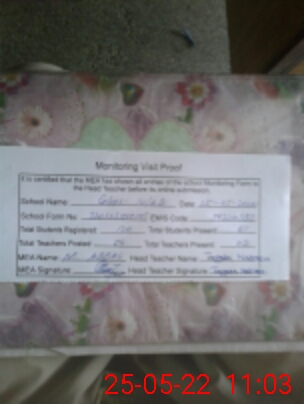 | Attendance Register | Head Teacher | MEA with School | Visit Proof |