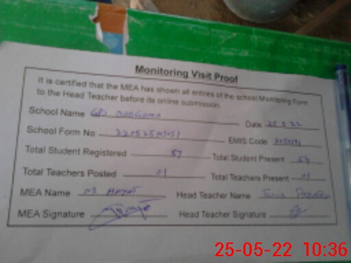 | EMIS Code: 31150131 | Name of School: GPS DUBGOMA | |||