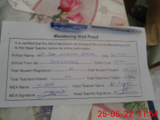 | Attendance Register | Head Teacher | MEA with School | Visit Proof |