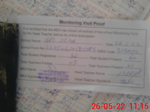 | Certified that this School was Inspected by the Undersigned MEA/DMO Today and the Information Stated Above is as Per Record. | |||||