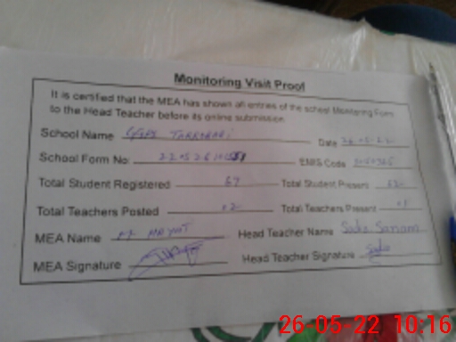 | Certified that this School was Inspected by the Undersigned MEA/DMO Today and the Information Stated Above is as Per Record. | |||||