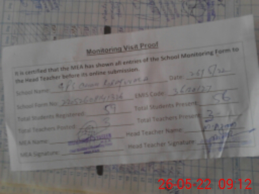 | Certified that this School was Inspected by the Undersigned MEA/DMO Today and the Information Stated Above is as Per Record. | |||||