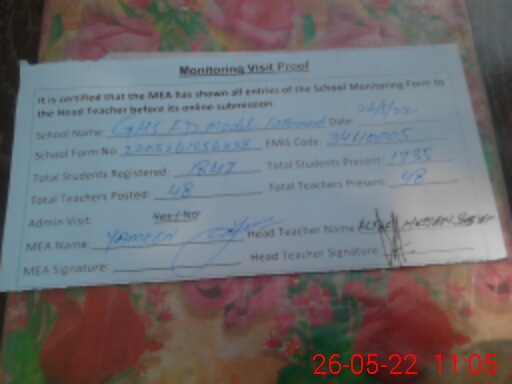 | Certified that this School was Inspected by the Undersigned MEA/DMO Today and the Information Stated Above is as Per Record. | |||||