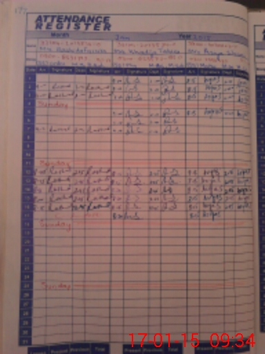 | CNIC | Full Name | Designation | R/C | Absence During Last Calender Month |