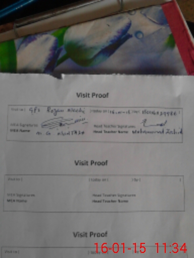 | Attendance Register | Head Teacher | MEA with School | Visit Proof |
