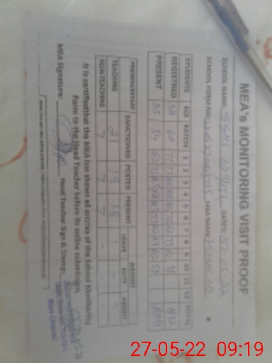 | Attendance Register | Head Teacher | MEA with School | Visit Proof |