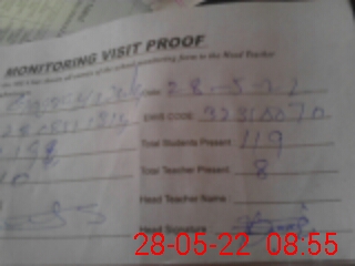 | Attendance Register | Head Teacher | MEA with School | Visit Proof |