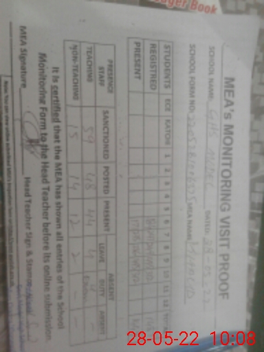 | Attendance Register | Head Teacher | MEA with School | Visit Proof |