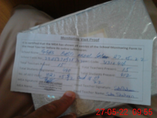 | Certified that this School was Inspected by the Undersigned MEA/DMO Today and the Information Stated Above is as Per Record. | |||||