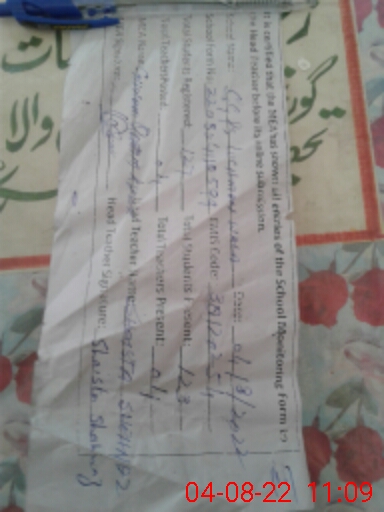 | Certified that this School was Inspected by the Undersigned MEA/DMO Today and the Information Stated Above is as Per Record. | |||||