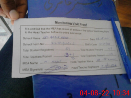 | Attendance Register | Head Teacher | MEA with School | Visit Proof |