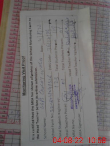 | Certified that this School was Inspected by the Undersigned MEA/DMO Today and the Information Stated Above is as Per Record. | |||||