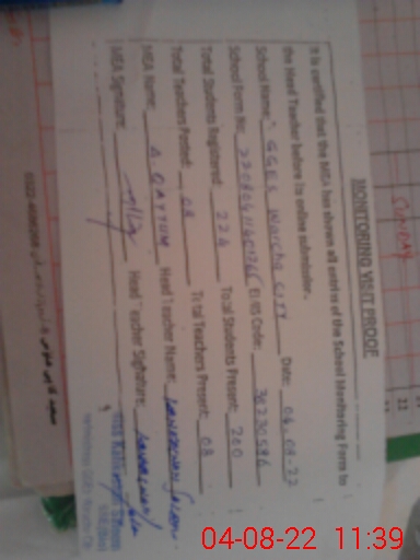 | Certified that this School was Inspected by the Undersigned MEA/DMO Today and the Information Stated Above is as Per Record. | |||||