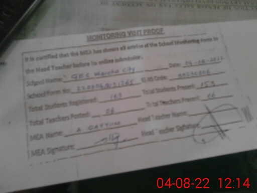| EMIS Code: 38230806 | Name of School: GES WARCHHA CITY | |||