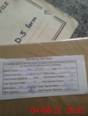 | Attendance Register | Head Teacher | MEA with School | Visit Proof |