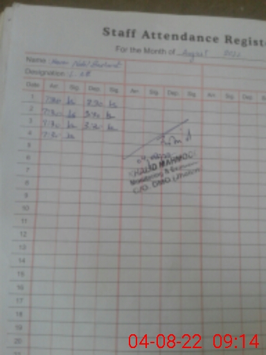 | CNIC | Full Name | Designation | R/C | Absence During Last Calender Month |