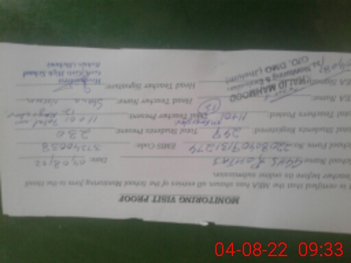 | Attendance Register | Head Teacher | MEA with School | Visit Proof |