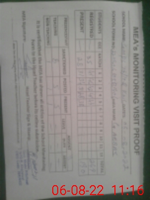 | Attendance Register | Head Teacher | MEA with School | Visit Proof |