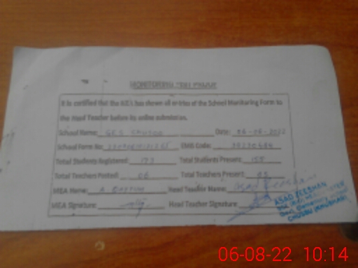 | EMIS Code: 38230489 | Name of School: GES CHUSOO | |||
